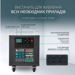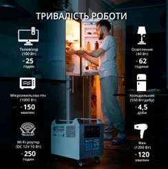 Сучасний багатофункційний пристрій поєднує в собі акумуляторну батарею, сонячний інвертор із можливістю підключеня сонячних панелей та систему безперебійного живлення з чистою синусоїдою.